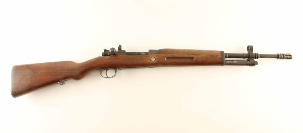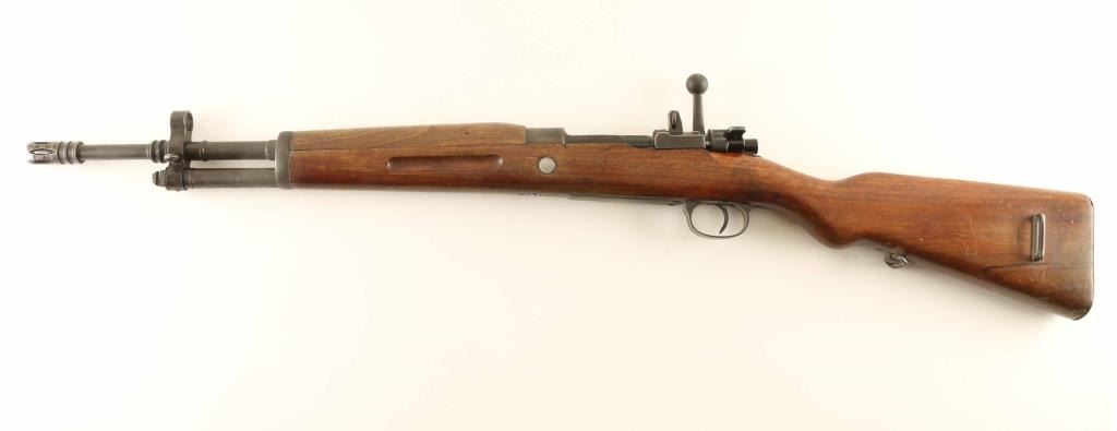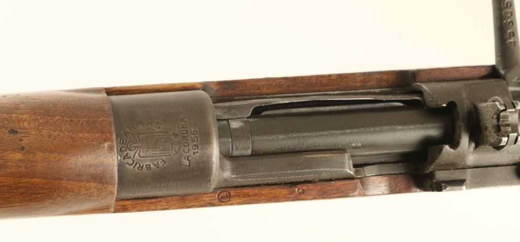 Spanish military rifle chambered for the 7.62x51mm cartridge, imported by C.A.I. St Albans VT. Barrel length is 18.5 inches. Features a peep rear sight and flash suppressor. Metal finish is 95% coverage dark grey parkerizing, with a hint of brown color throughout. Bare metal showing on sharp edges. Thinning of finish at flash suppressor, cleaning kit tube, receiver ring. Denting on floorplate. Stock is overall very good condition with signs of scuffing and loss of finish at stock recoil lug (both sides) and near buttplate. Bore is excellent. Sling swivels on side. All observed numbers match. Condition is NRA Very Good ***C&R Firearm***