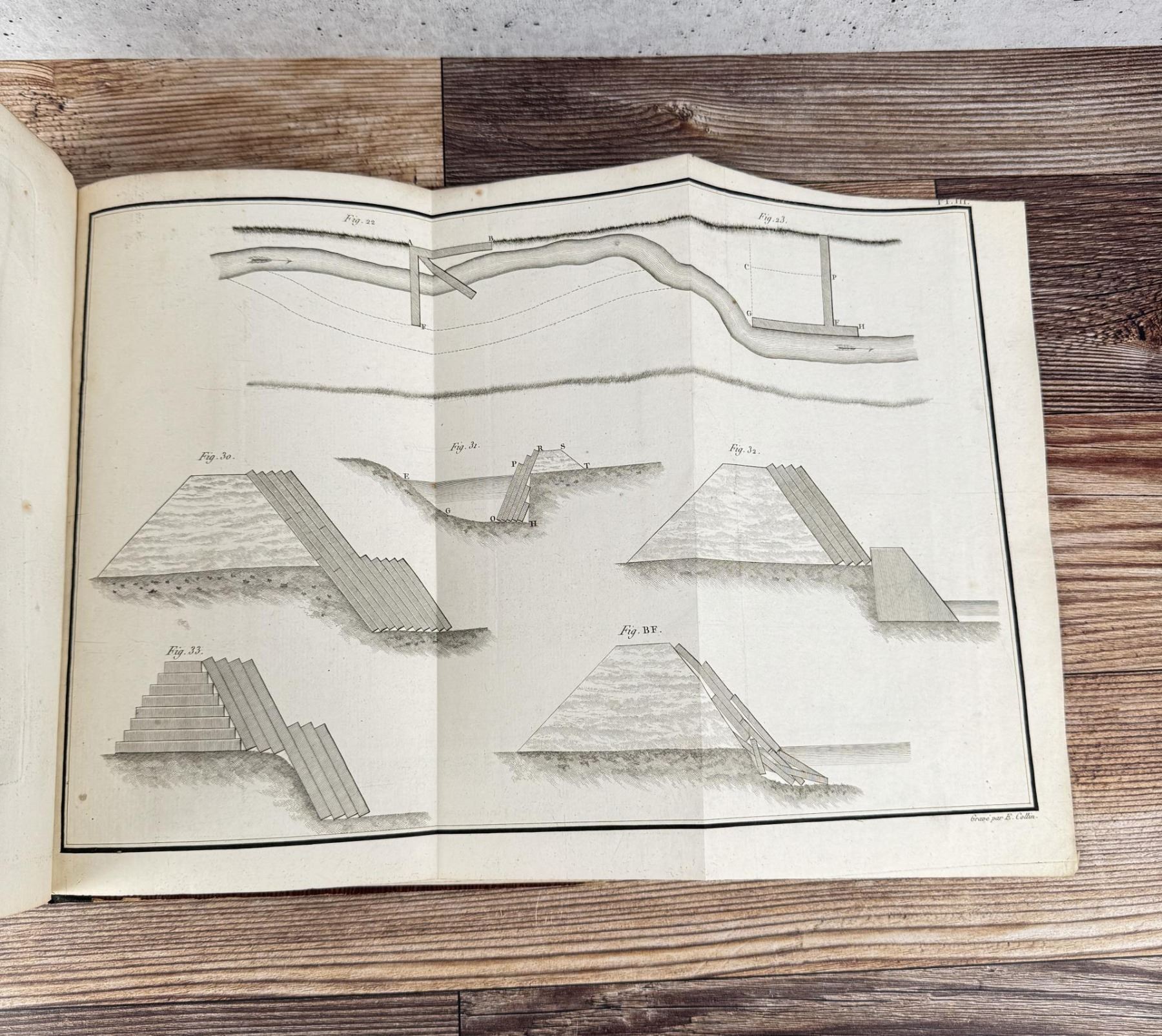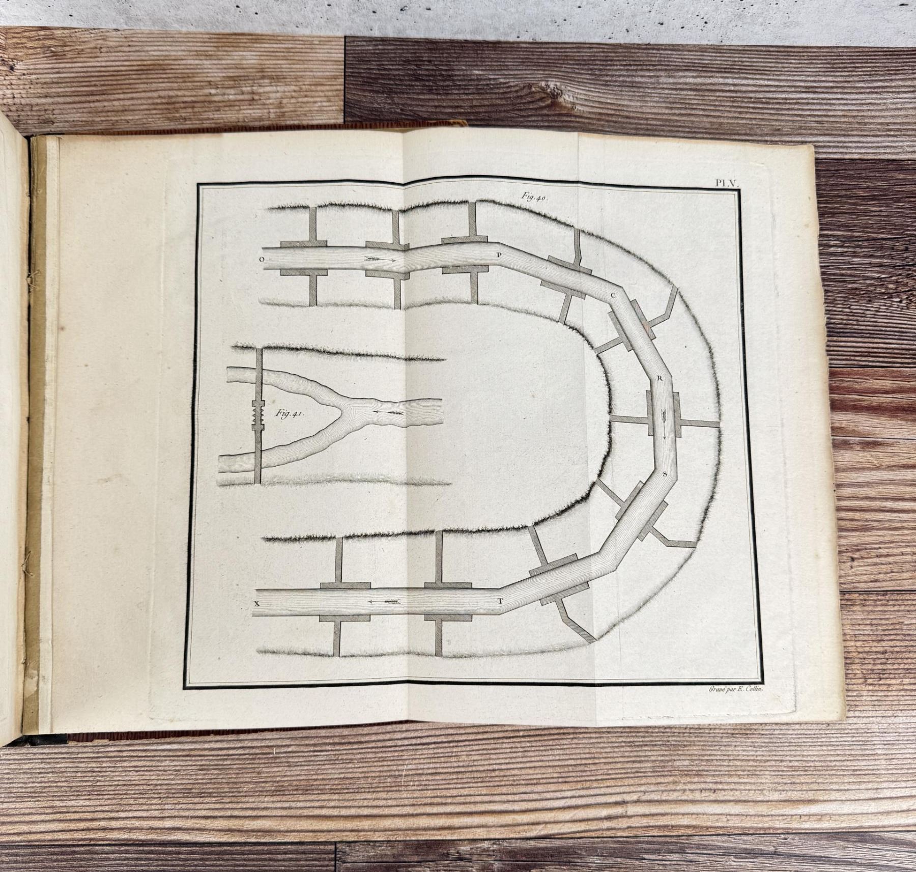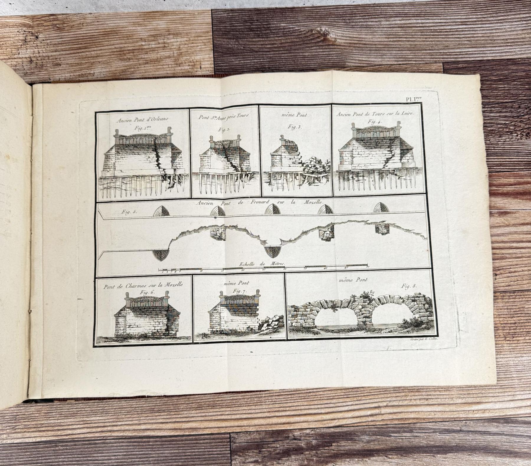 Rivieres Et Torrens. Research On The Formation And Existence Of Streams, Rivers and Torrents. Francois-Michel Le Creulx, 1804. This volume bears the stamp of the Tetschner Library which was seized in 1933 by the Czechoslovak Army during the Occupation of Prague. The books were sold in 1934 to Hans Peter Kraus. Kraus was the most successful rare book dealer in the second half of the 20th century. Lecreulx (1734–1812) was one of the most important civil engineers in France during the late 18th and early 19th centuries. He oversaw the construction of a large number of important bridges and in 1801 was appointed inspector general of bridges and roads. He took part in the planning of most of the chief public works programs during the years of the Empire. This work is a comprehensive theoretical and practical treatise on river control. The excellent plates depict various techniques of damming, embankment, construction of locks, etc.