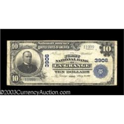 <TABLE cellSpacing=0 cellPadding=0 width="100%" bgColor=#000000 border=0><TBODY> <TR><TD width="100%"><TABLE cellSpacing=1 cellPadding=3 width="100%" border=0><TBODY><TR><TD width="100%" bgColor=#79735c><FONT face=arial color=#ffffff size=3><B>Description</B> </FONT></TD></TR><TR><TD width="100%" bgColor=#ffffff><FONT face=arial size=2><B>La Grange, TX</B></I> - $10 1902 Plain Back Fr. 626 <B>The First NB</B></I> Ch. # 3906<BR>A nice large size Ten from this Fayette County Bank, problem-free but for a tiny hole near the center. <B>Fine-Very Fine.</B></I> (450-750 ) </FONT></TD></TR></TBODY></TABLE></TD></TR></TBODY></TABLE><BR><TABLE cellSpacing=0 cellPadding=0 width="100%" bgColor=#000000 border=0><TBODY><TR> Important notice: Heritage usually auctions material at the rate of 200-250 lots per hour. On some occasions eBay Live bid software or the Internet may not be able to keep up with the pace of the auction. We recommend placing a realistic absentee bid now as insurance to avoid disappointment. Occasionally the auctioneer may eliminate or reject an eBay Live bid, and the auctioneer may also reopen a lot after the close of the eBay live bidding (usually because we missed an audience bid), and may reject your bid even if it shows you as the winning bidder. By bidding via eBay Live, you agree that Heritage may award the lot to another bidder at its sole discretion under the circumstances described above or any other reasonable circumstances. Also please note that all Heritage lots purchased through eBay Live carry a 20% Buyer's Premium. Please make sure you read the Terms and Conditions before you bid.</TR></TBODY></TABLE>