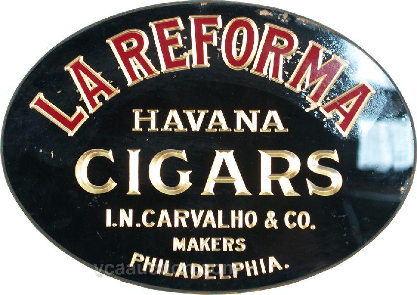 La Reforma Havana Cigars Reverse Glass Sign, I.N. Carvalho & Co. Makers Philadelphia - 13" x 9-1/2"