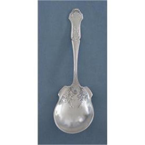 International Silver co. 1909 sterling silver pattern "La Rochelle" large serving or salad spoon, 8 3/4" long, bowl 2 3/4" wide. Condition is good and it polishes beautifully.