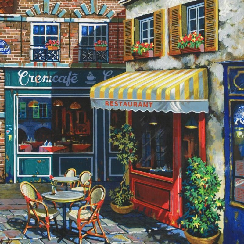 "La Ruelle" is a limited edition serigraph on paper by Anatoly Metlan, numbered and hand signed by the artist. Includes Certificate of Authenticity. Measures approx. 19" x 25" (with border), 16.5" x 22.5" (image).