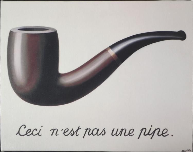 La Trahison des Images Rene Magritte Print On Canvas Art Title: "La Trahison des Images" Artist: Rene Magritte Medium: unsigned offset lithograph print transferred onto canvas: stretched on boardSize: 13 1/2" x 10 1/2"Condition: Excellent Biography: Rene Magritte (1898 - 1967) was a groundbreaking Surrealist who combined wit and illusion. Magritte, who originally designed wallpaper, posters and ads, began painting full time after receiving a gallery contract. In Magritte's signature style, he places ordinary objects in unexpected contexts, often blocked faces with floating objects to challenge preconceptions about the unknown. Despite harsh initial criticism of his work, he became one of the world's most significant artists. Public awareness of Magritte escalated when his art was featured on 1960's album covers, and it still remains provocative and highly influential. Found from: http://www.allposters.com/-sp/La-Trahison-des-Images-Posters_i7403830_.htm