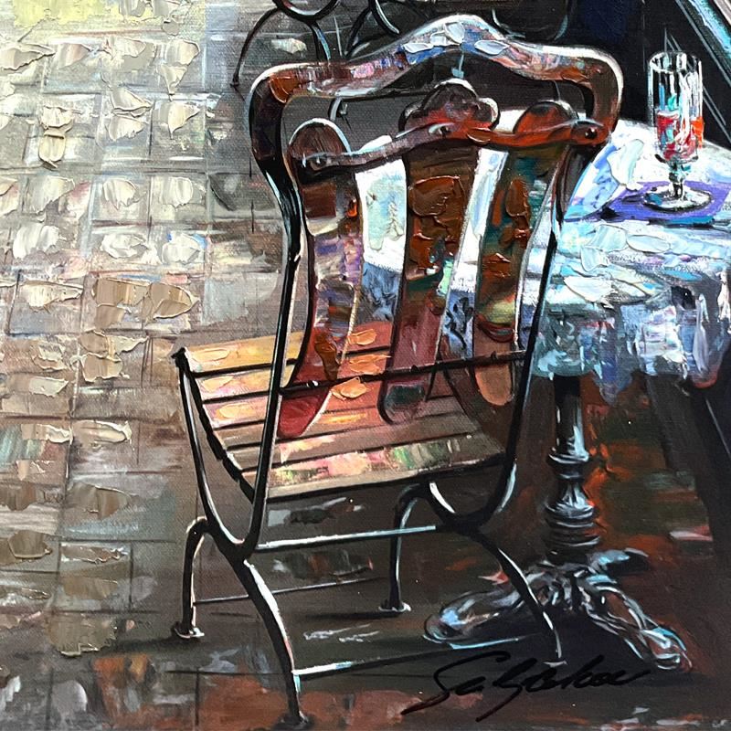 "La Tremblade" is a hand embellished limited edition printer's proof on stretched canvas by Vadik Suljakov, numbered 1/5 inverso and hand signed by the artist. Includes Letter of Authenticity. Measures approx. 30" x 40" (image). There may be minor wear on the corners and edges.