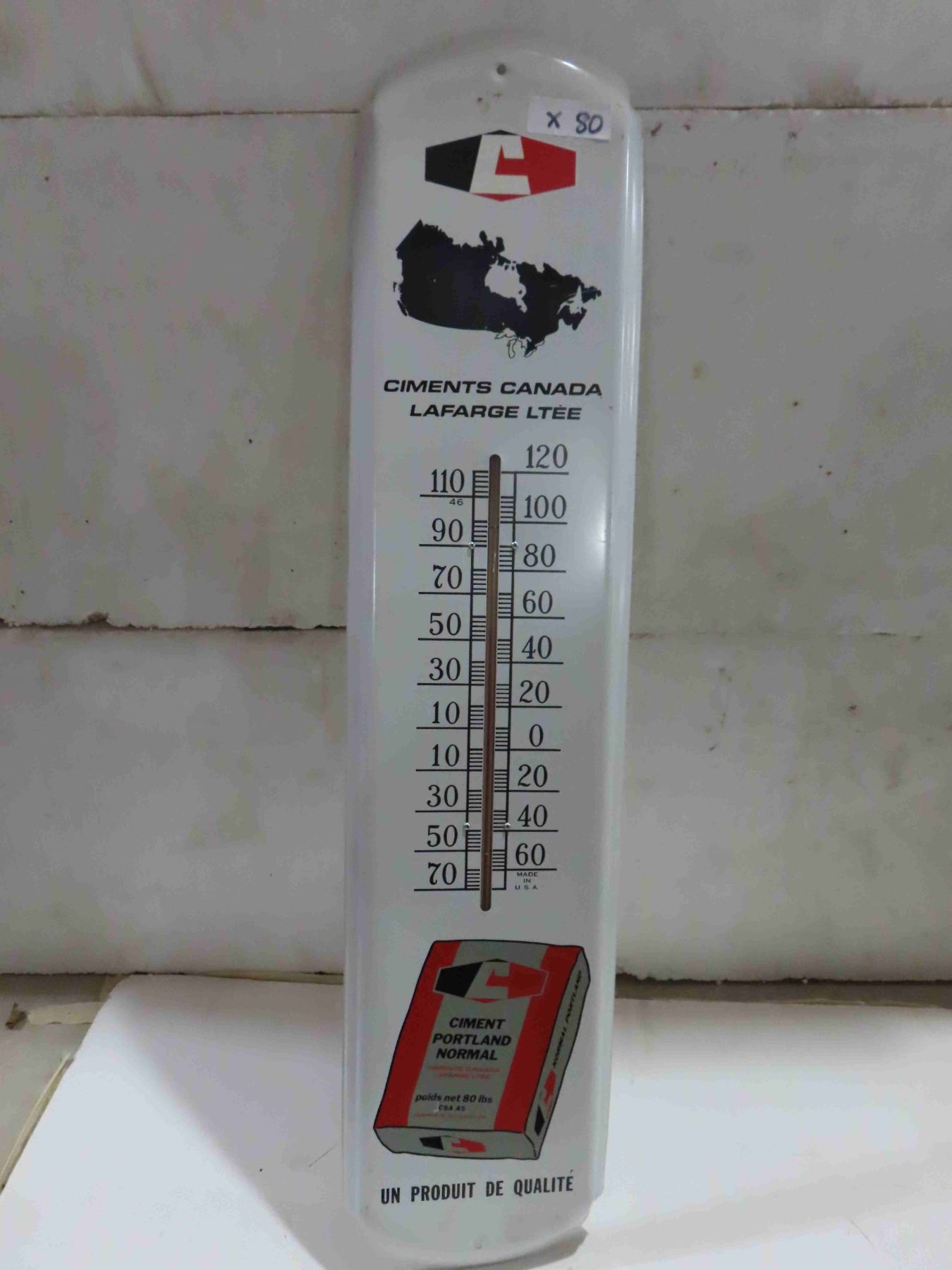 LaFarge Cement Metal Thermometer with Bulb English+French 8'' x 36''