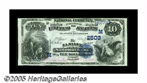 <B>LaSalle, IL</B></I> - $10 1882 Value Back Fr. 577 <B>The LaSalle NB</B></I> Ch. #(M)2503<BR>The small hoard of uncirculated $10 Value Backs from here always seem to come the same, fully crisp and original with pack-fresh paper surfaces and one tight margin. This example is no exception. <B>Choice Crisp Uncirculated.</B></I>