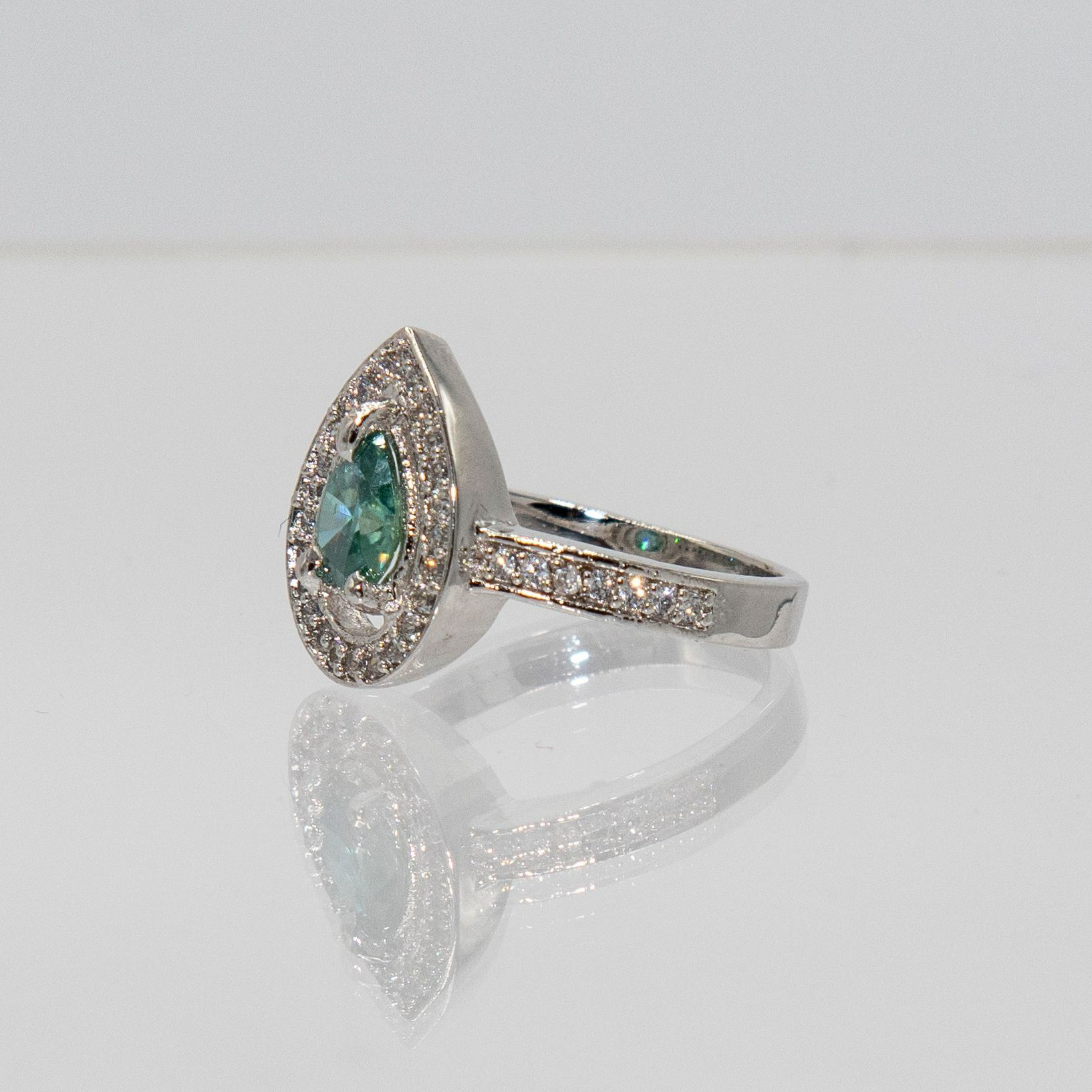 Stunning 2 Ct Emerald Green Color Moissanite Ring. This Lab Created Moissanite Center Stone Is Near Flawless. It Will Test Positive For A Diamond On Almost Every Single Diamond Tester. It Is A Fine Pear Cut With Cz Accent Stones. Mounted In Solid .925 Sterling Silver Complimented By Rhodium Overlay Which Is A Precious Metal That Is In The Platinum Family. Rhodium Overlay Gives The Silver A White Gold Shine Polish And Finish. It Is Also Tarnish Resistant. The Ring Is A Size 8. Total Gram Wt. Is Approx. 4 Grams. This Lab Moissanite Exhibits More Brilliance Than A Diamond Thanks To A Dispersion That Is 2.4 Times Higher Than A Natural Diamond And Conflict Free.
