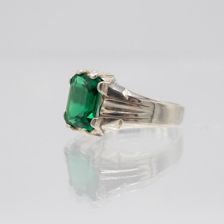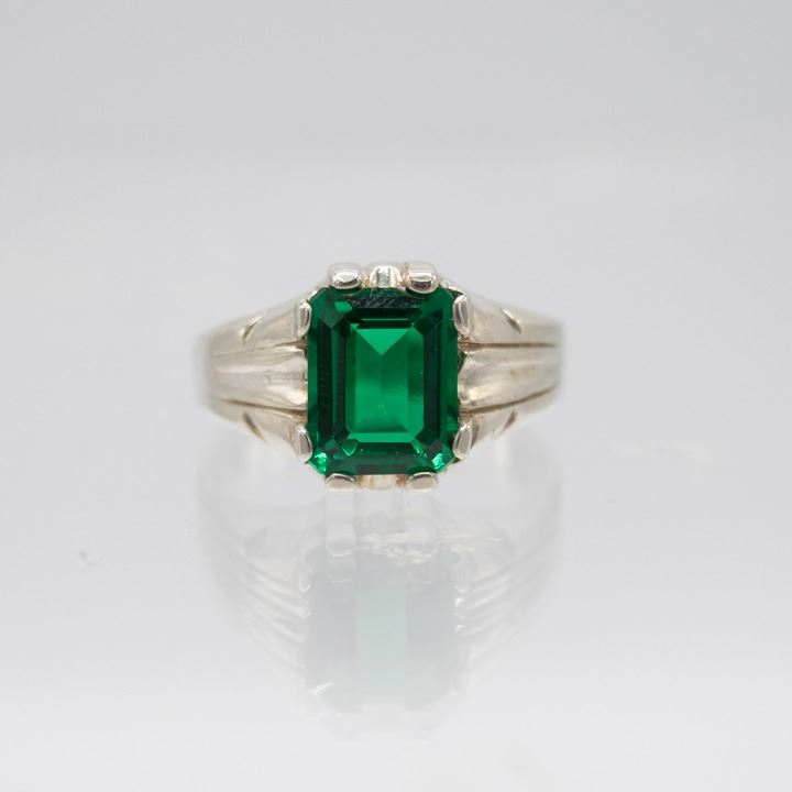 Gorgeous 5 Ct VVS1 Emerald Ring. This lab created emerald ring is near flawless. Beautiful emerald cut mounted in elaborately designed solid .925 sterling silver size 9. The total gram wt is 5 grams. This ring is beautiful.