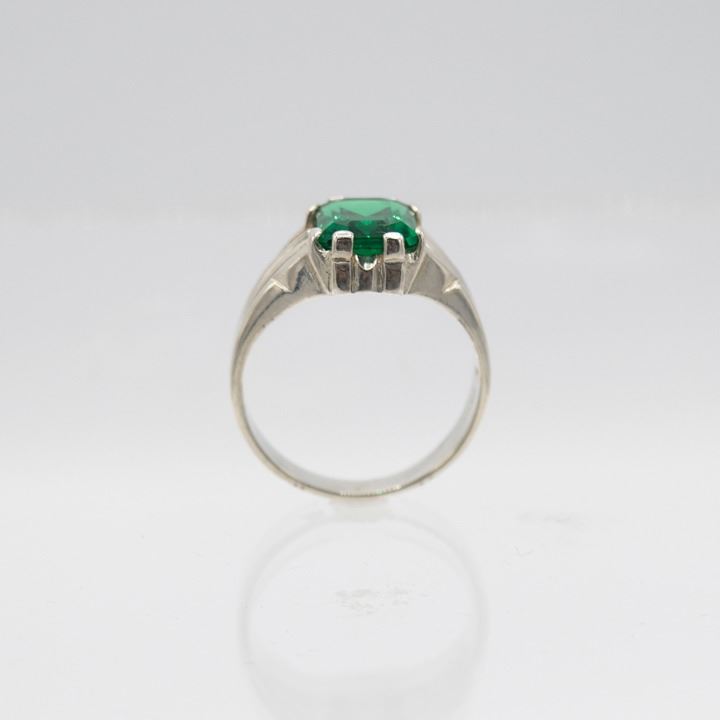 Gorgeous 5 Ct VVS1 Emerald Ring. This lab created emerald ring is near flawless. Beautiful emerald cut mounted in elaborately designed solid .925 sterling silver size 9. The total gram wt is 5 grams. This ring is beautiful.