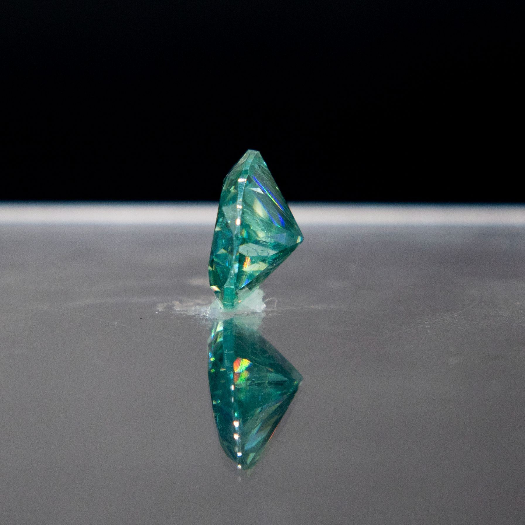 Sparkling Lab Created 6.17 Ct Mint Green Diamond Solitare. This lab created diamond measures approx. 15.30 x 12 x 6 mm. This lab diamond is VVS 1 eye clean and bursting out with a full spectrum of colors. With a 9.25 mohs measurement of hardness this lab created diamond will test positive for a diamond on almost any diamond tester. With a refractive index of 2.65-2.69, this lab diamond exhibits more brilliance than a diamond thanks to a dispersion that is 2.4 times higher than a natural diamond. Don't miss this one.