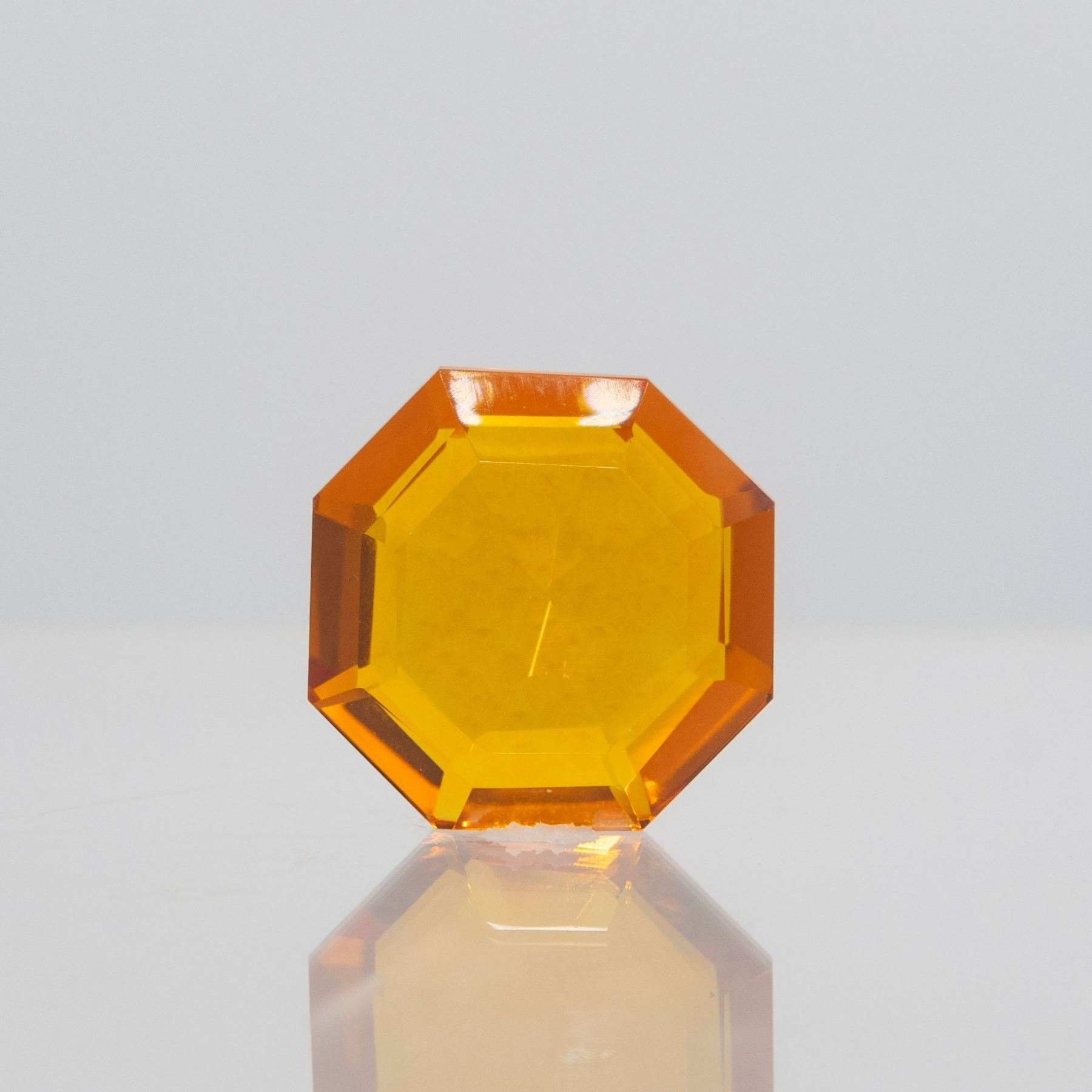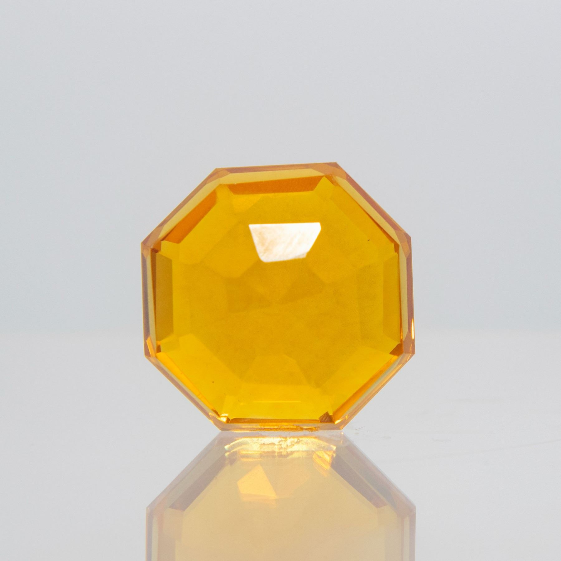 Lab Created 64.10 Ct VVS1 Eye Clean Bright Orange Citrine. This large fancy cut citrine is a fancy octagon cut measuring 26.08 x 25.97 x 12.45 x mm. Perfect for a pendant.**Amazing Sparkle And Radiance.