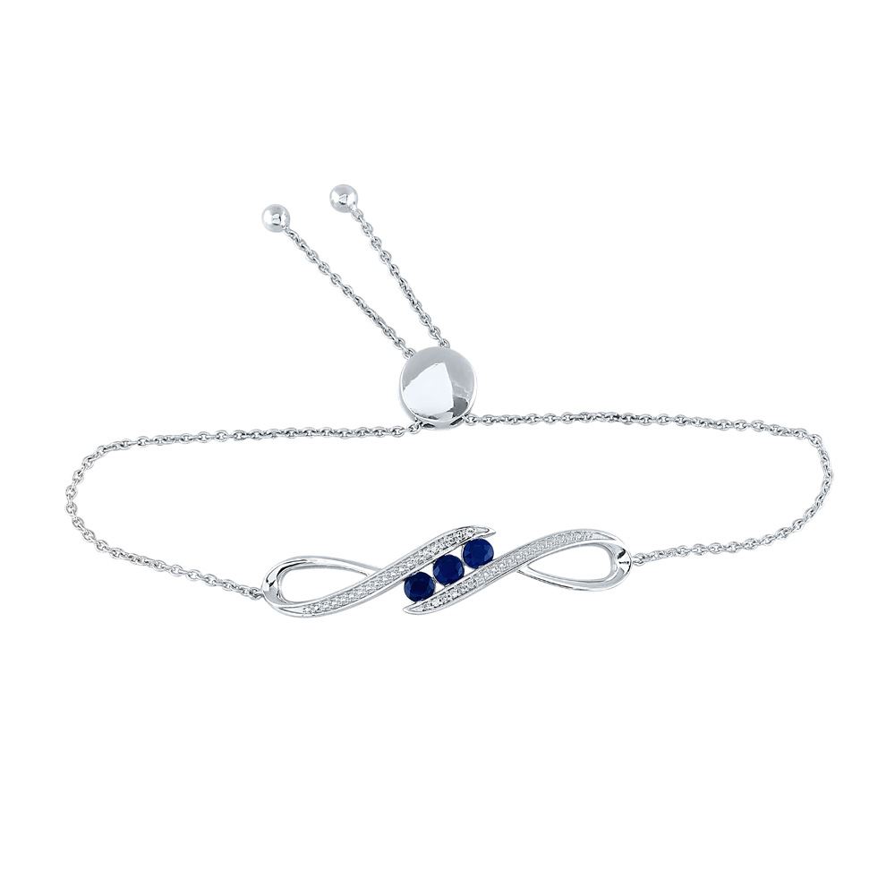 Sterling Silver Womens Round Lab-Created Blue Sapphire Bolo Bracelet 1/2 Cttw