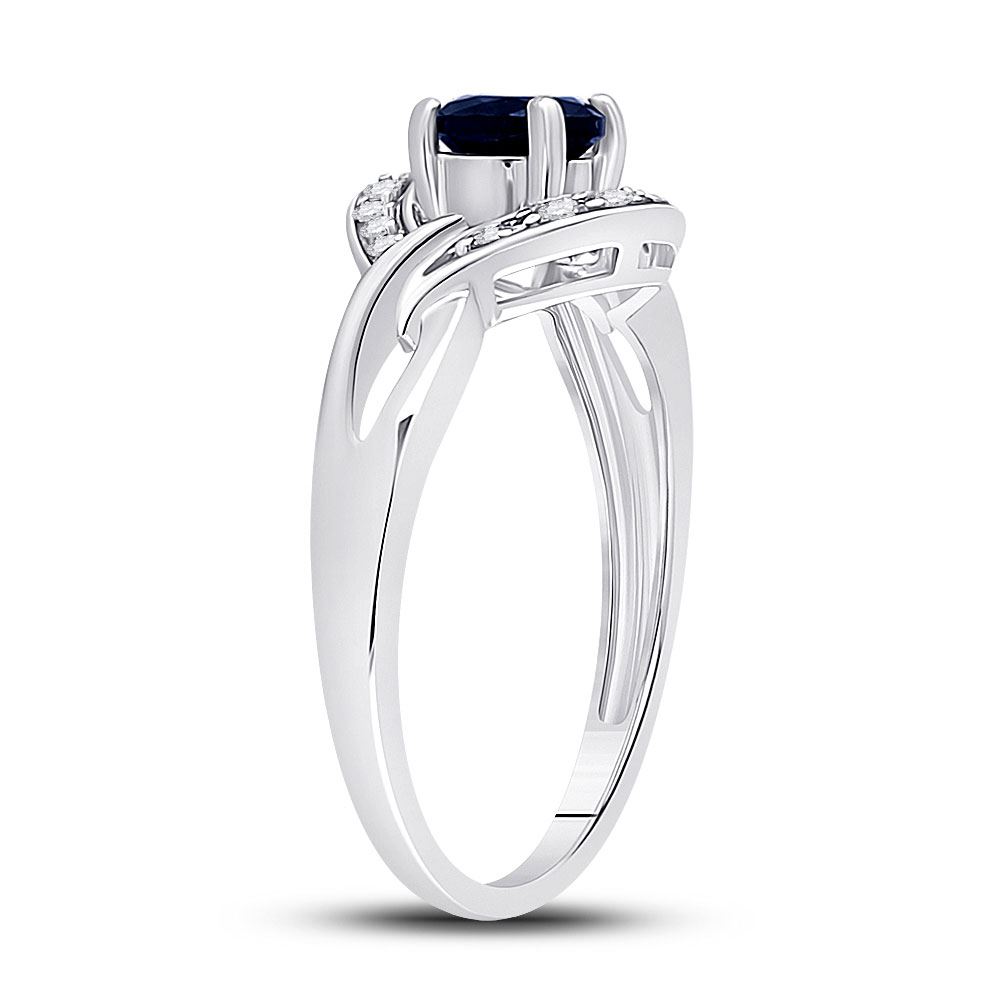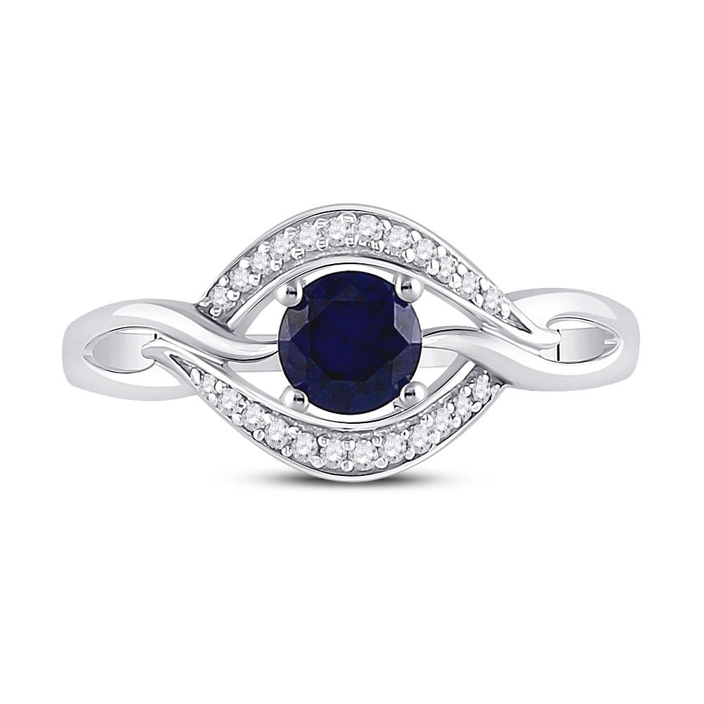 Sterling Silver Womens Round Lab-Created Blue Sapphire Solitaire Diamond Ring 5/8 Cttw