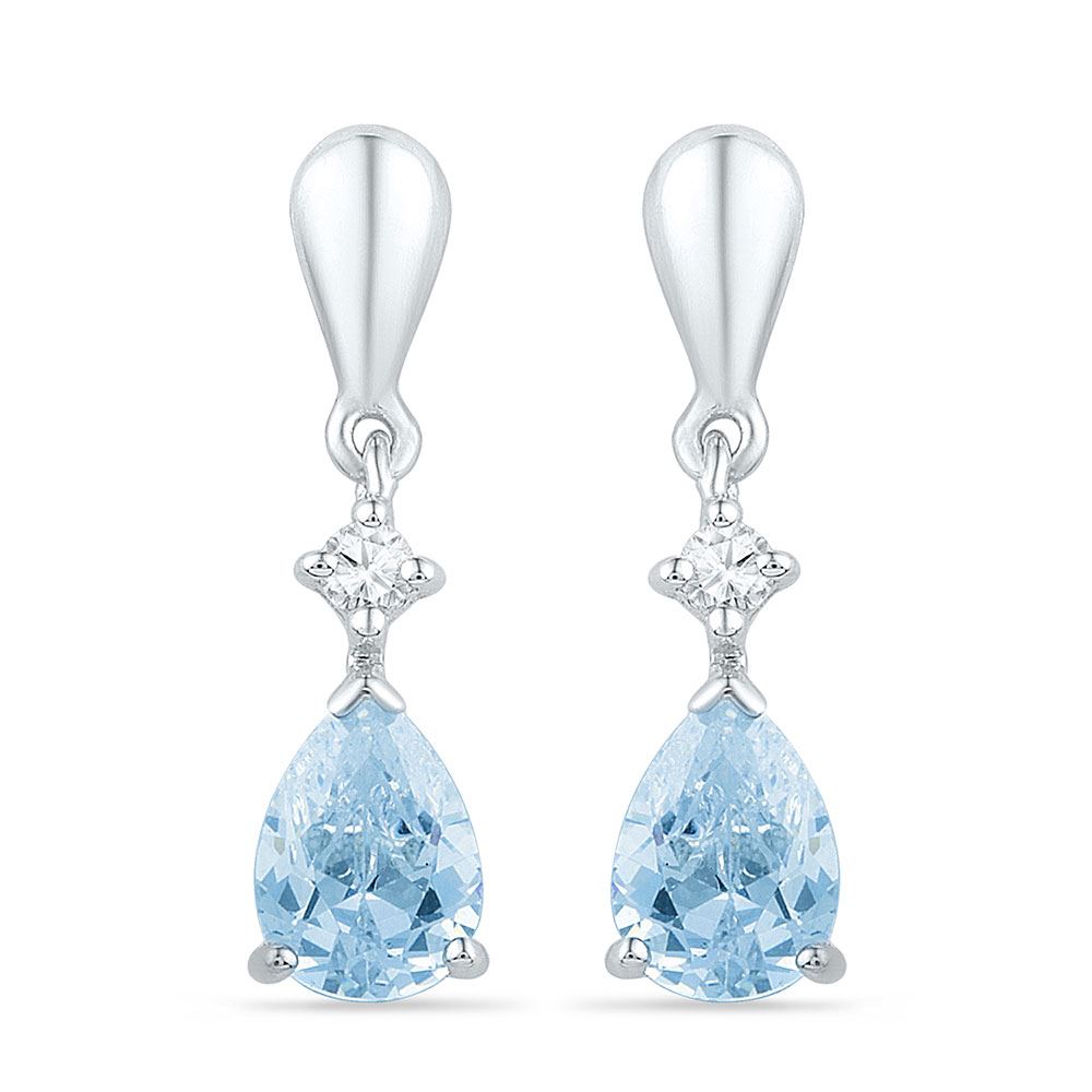 REF-17X3Y - SKU: GD100672 ---- Lab-Created Blue Swiss Topaz & Diamond Dangle Earrings 1-3/4 Cttw 10k White Gold