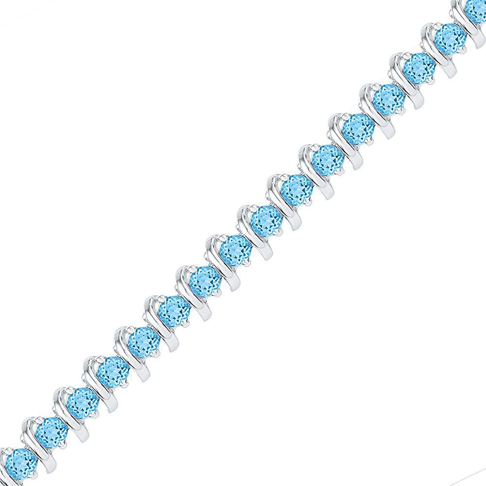 Sterling Silver Womens Round Lab-Created Blue Topaz Tennis Bracelet 6-1/2 Cttw