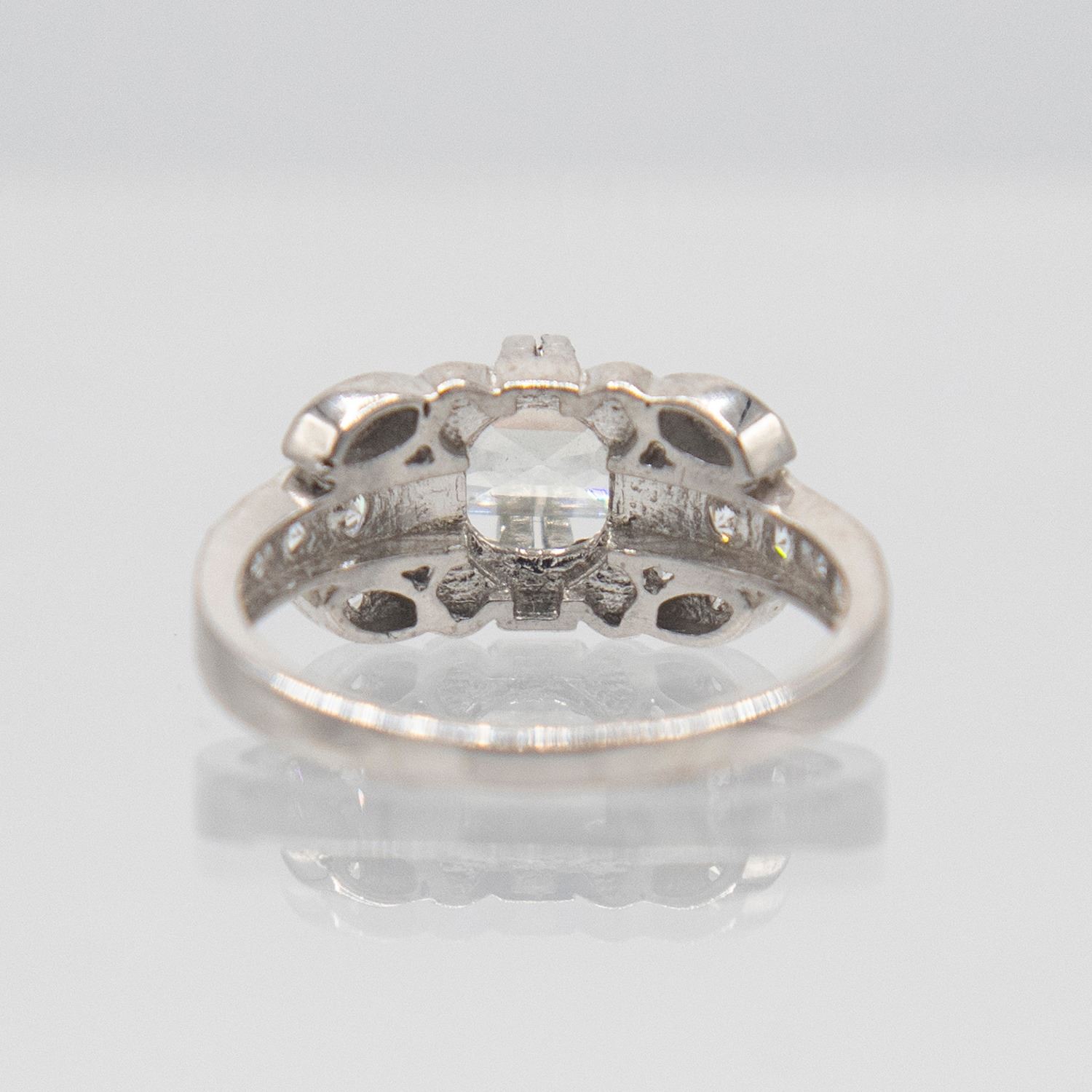 Dazzling 2.2 Ct White Diamond Ring. This lab created diamond center stone is eye clean. It will test positive for a diamond on almost every single diamond tester. This is an brilliant round diamond cut mounted in solid .925 sterling silver complimented by rhodium which is a precious metal that is in the family of platinum. Rhodium overlay gives the silver a white gold shine polish and finish. It is also tarnish resistant. The ring is a size 7 .Total gram wt. is approx.2.7 grams.