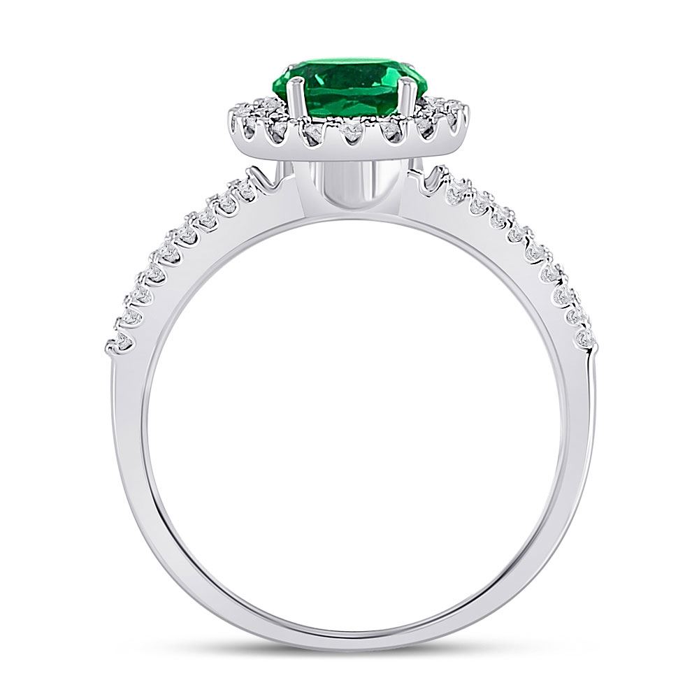 10kt White Gold Womens Round Lab-Created Emerald Diamond Solitaire Ring 1-1/2 Cttw