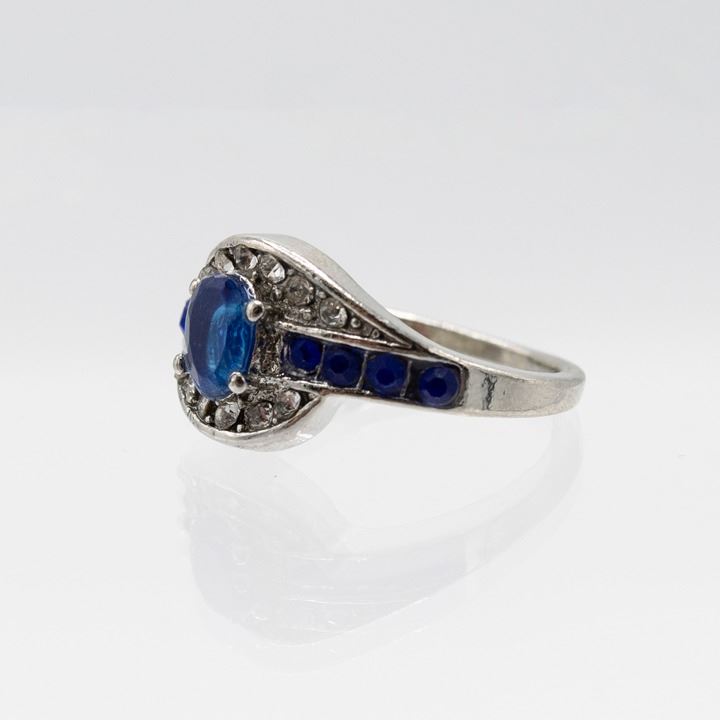 Ladies Blue Sapphire White Gold Filled Ring. These lab created sapphires are near flawless. White gold filled gives that high polished shine and will not tarnish. Size 8 Total gram weight is 4 grams