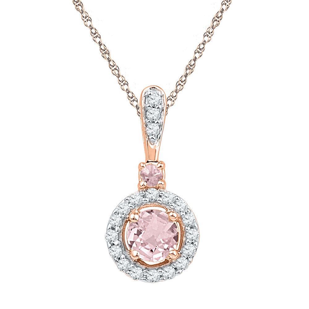 10kt Rose Gold Womens Round Lab-Created Morganite Solitaire Pendant 1/2 Cttw