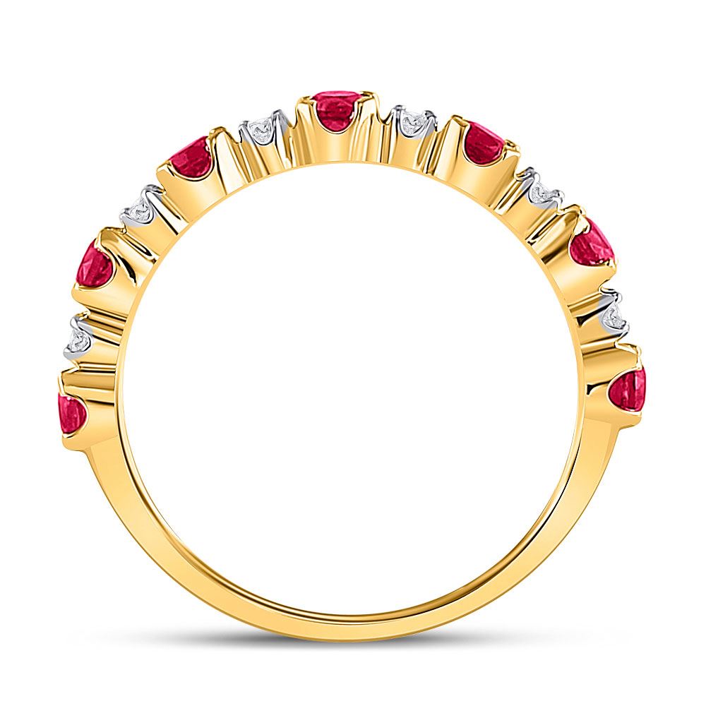 10kt Yellow Gold Womens Round Lab-Created Ruby Band Ring 1 Cttw