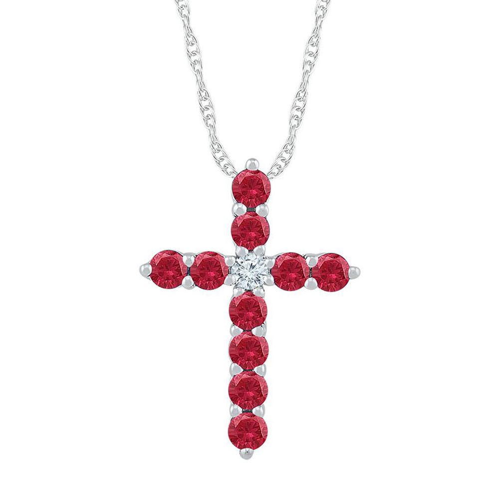 10kt White Gold Womens Round Lab-Created Ruby Cross Pendant 7/8 Cttw