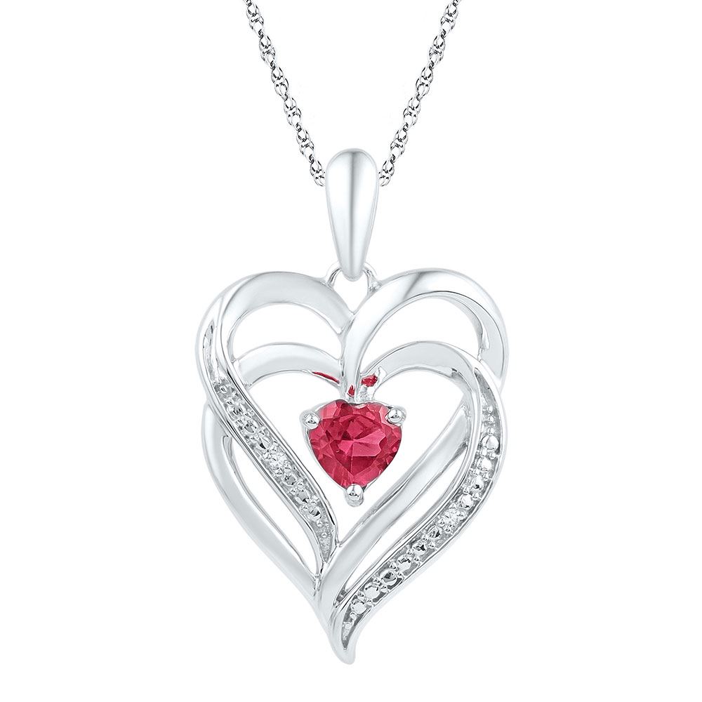Sterling Silver Womens Round Lab-Created Ruby & Diamond Heart Pendant .01 Cttw