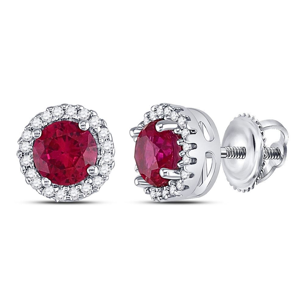 Sterling Silver Womens Round Lab-Created Ruby Solitaire Stud Earrings 1-1/3 Cttw