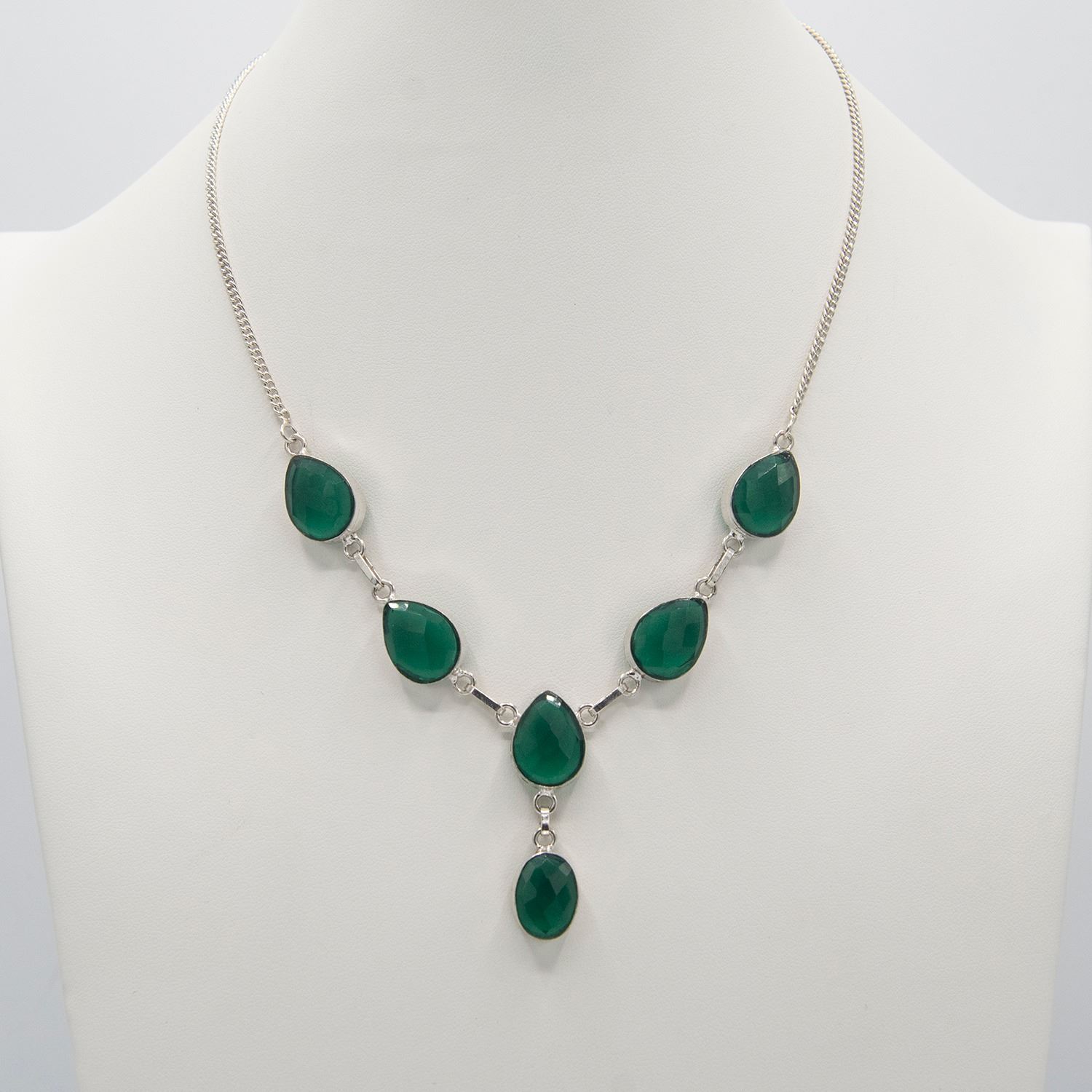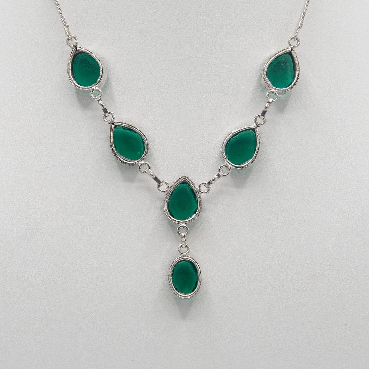 Stunning 4 Piece Tsavorite Garnet Jewelry Set. These lab made tsavorites are near flawless. They burst out with a dazzling sparkle and vivid even tone. The 4 piece set includes an 18 inch 6 single stone faceted necklace, bracelet, earrings and finger ring size 6.5. Mounted in .925 stamped sterling silver overlay. Total approximate weight of all pieces is 38.4 grams or 192.5 Cttw.