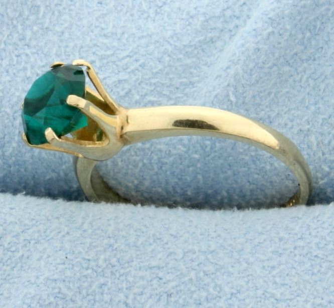 In 10K yellow gold, there is a 7mm round lab emerald that weighs approx. 1.25cts. Size 6 1/4 1.9g