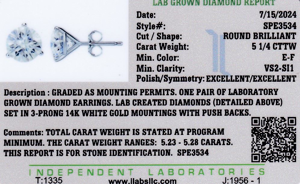 TITLE DESCRIPTION: Lab Grown 5.25 CTW Round Diamond Earrings