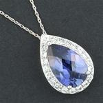 * Gem Type: Lab Created Sapphire Center Stone * Gem Size: 14 x 9 mm Faceted Pear Cut * Accent Gems: Brilliant Round Cut Genuine White Topaz * Setting Type: Tear Drop Pedant & Chain Necklace * Metal Type: Solid White Gold * Metal stamp: 10K * Pendent Size: 19 x 13 mm (LxW) * Chain Size: 18" 10K Gold Chain w/Ring Spring Clasp * "Solid Gold" Pedant & Chain - "Not" Plated Base Metals