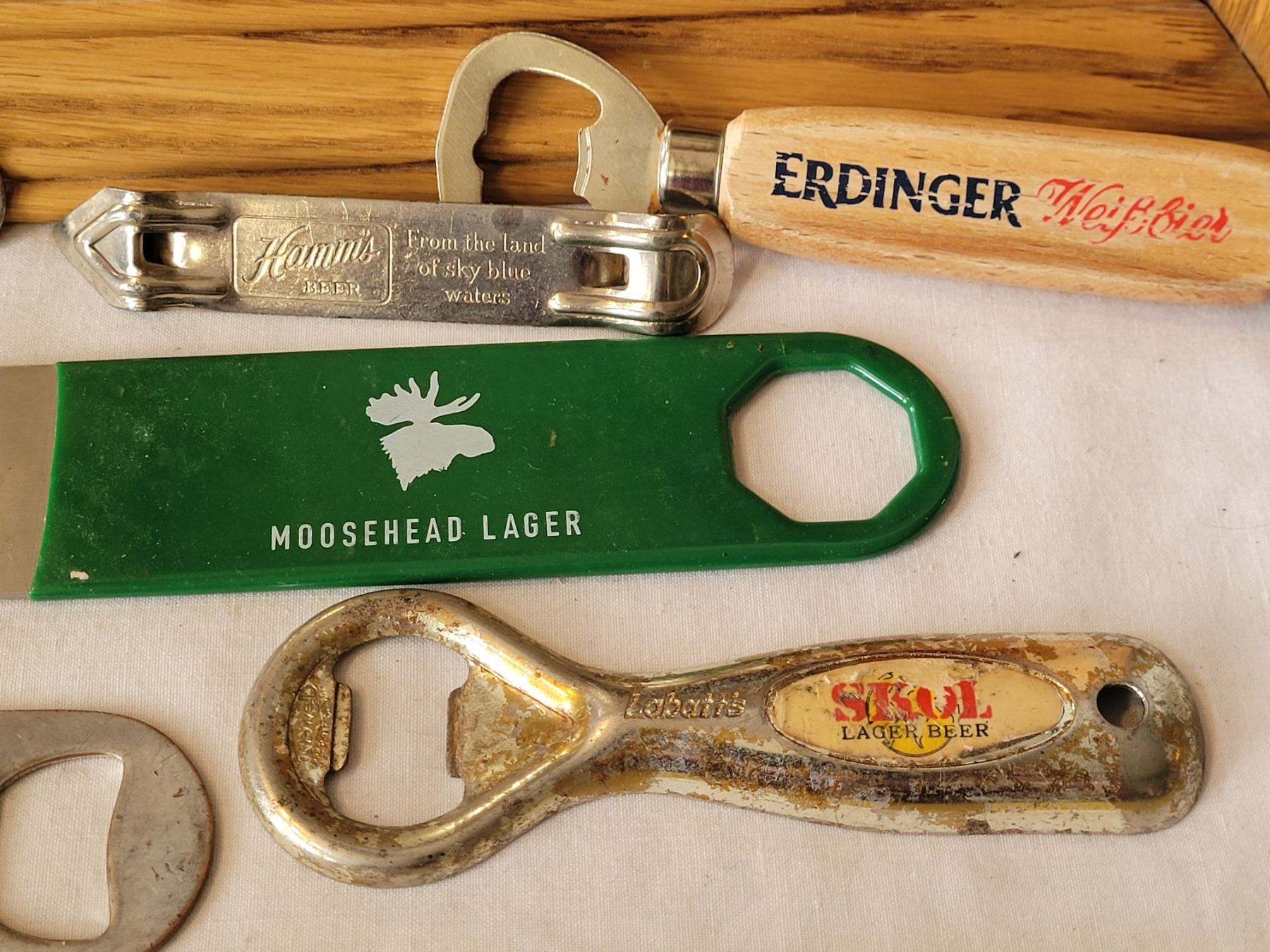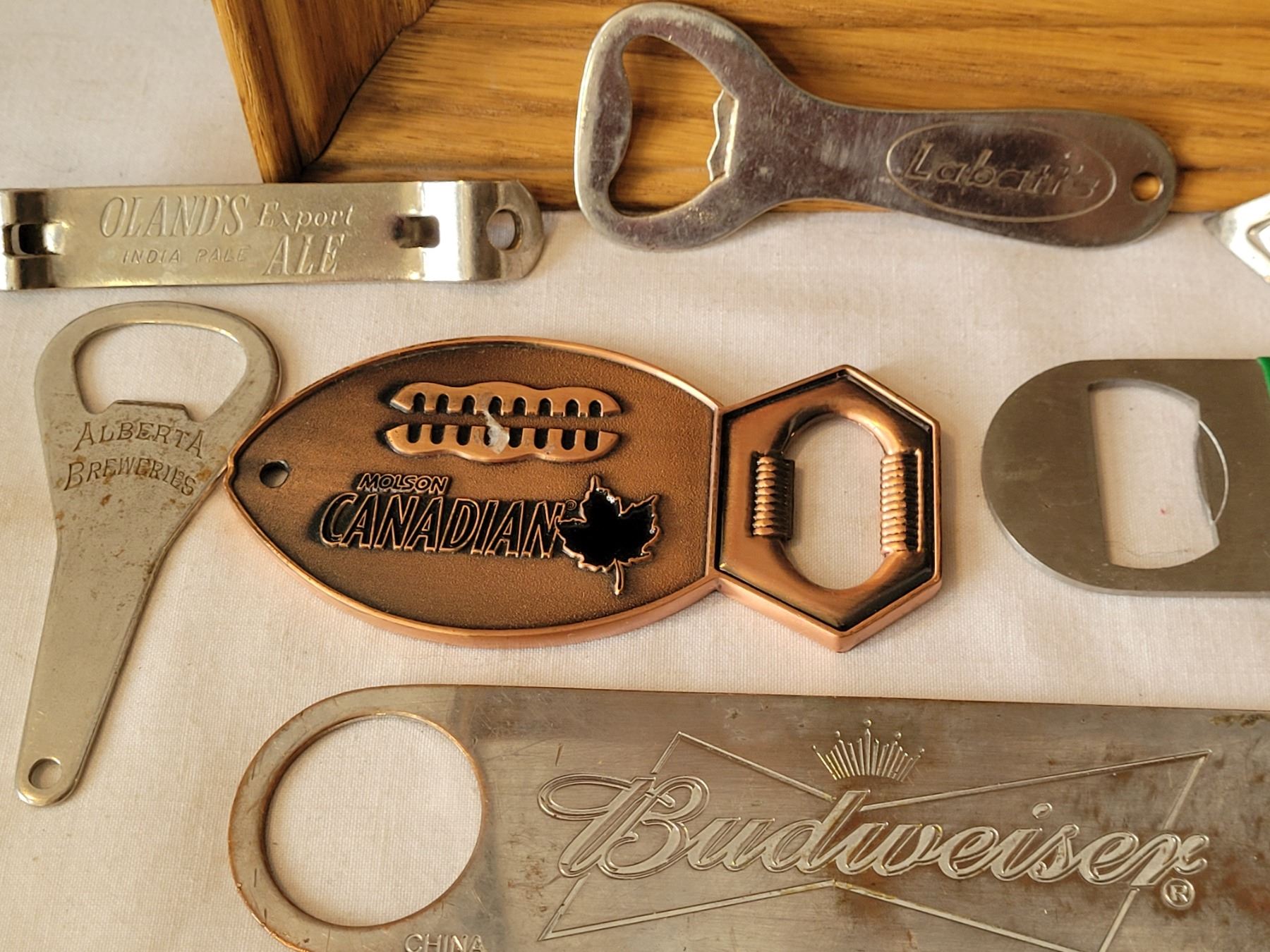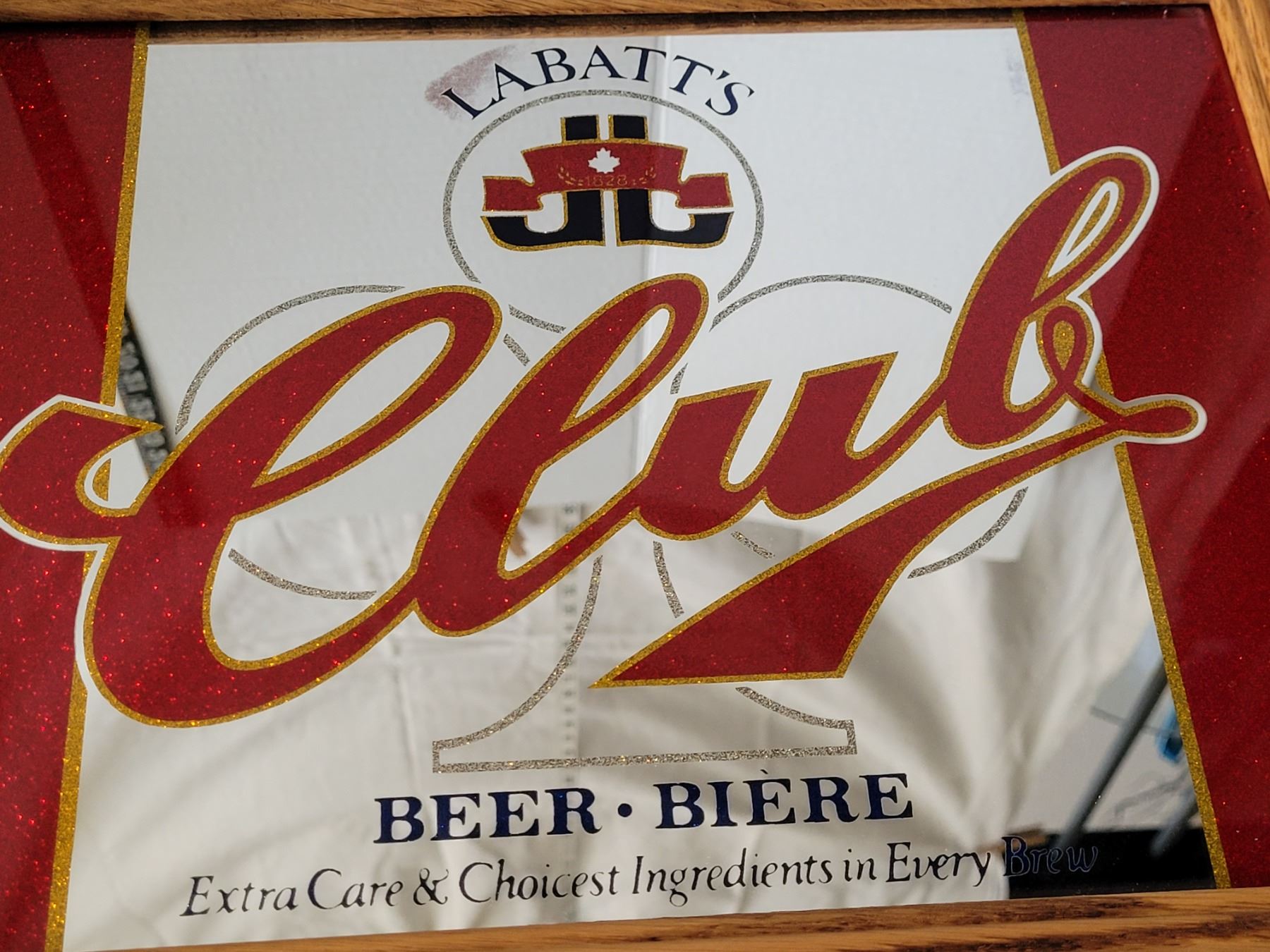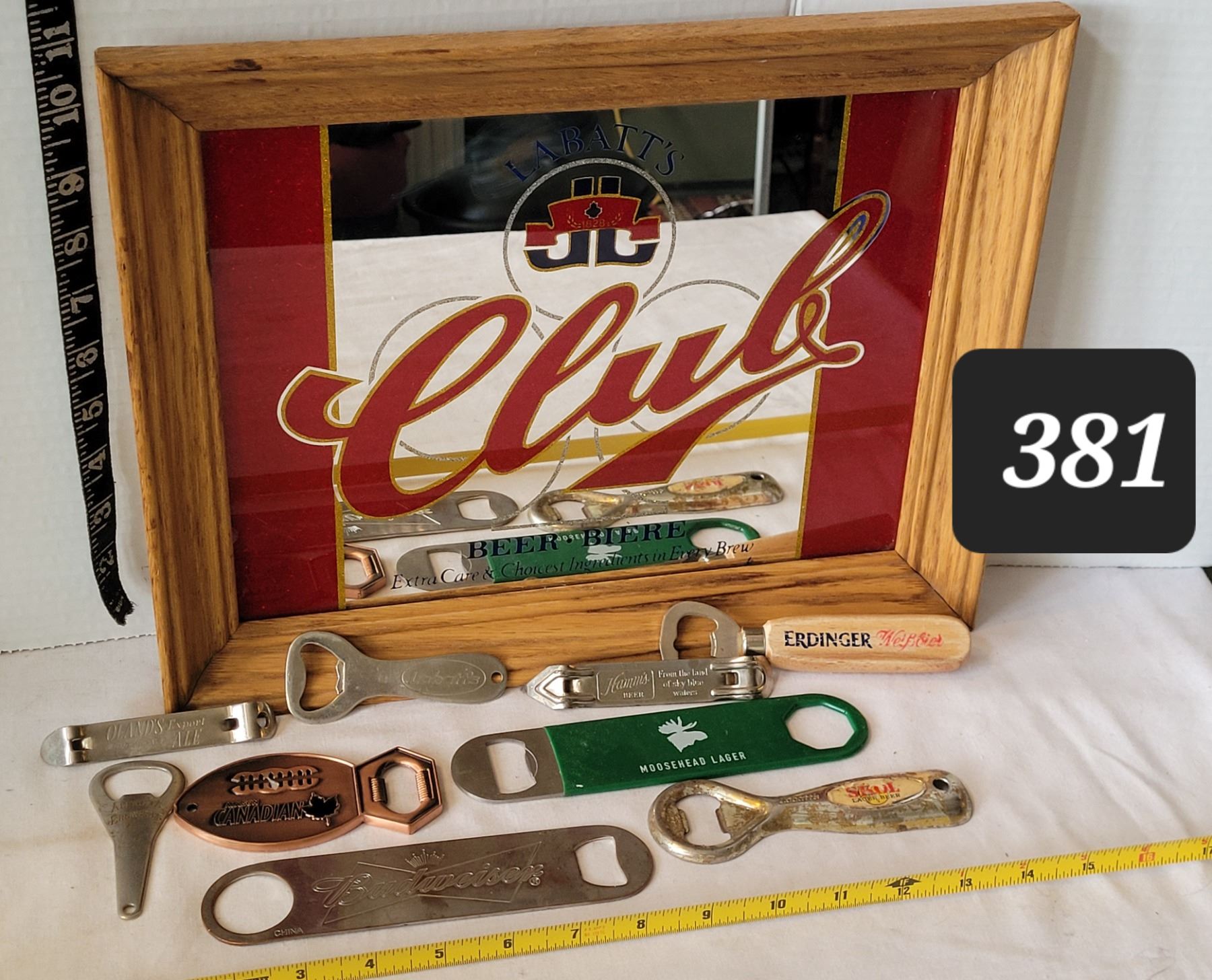 Labatt's Club mirror with new & vintage advertising bottle openers.