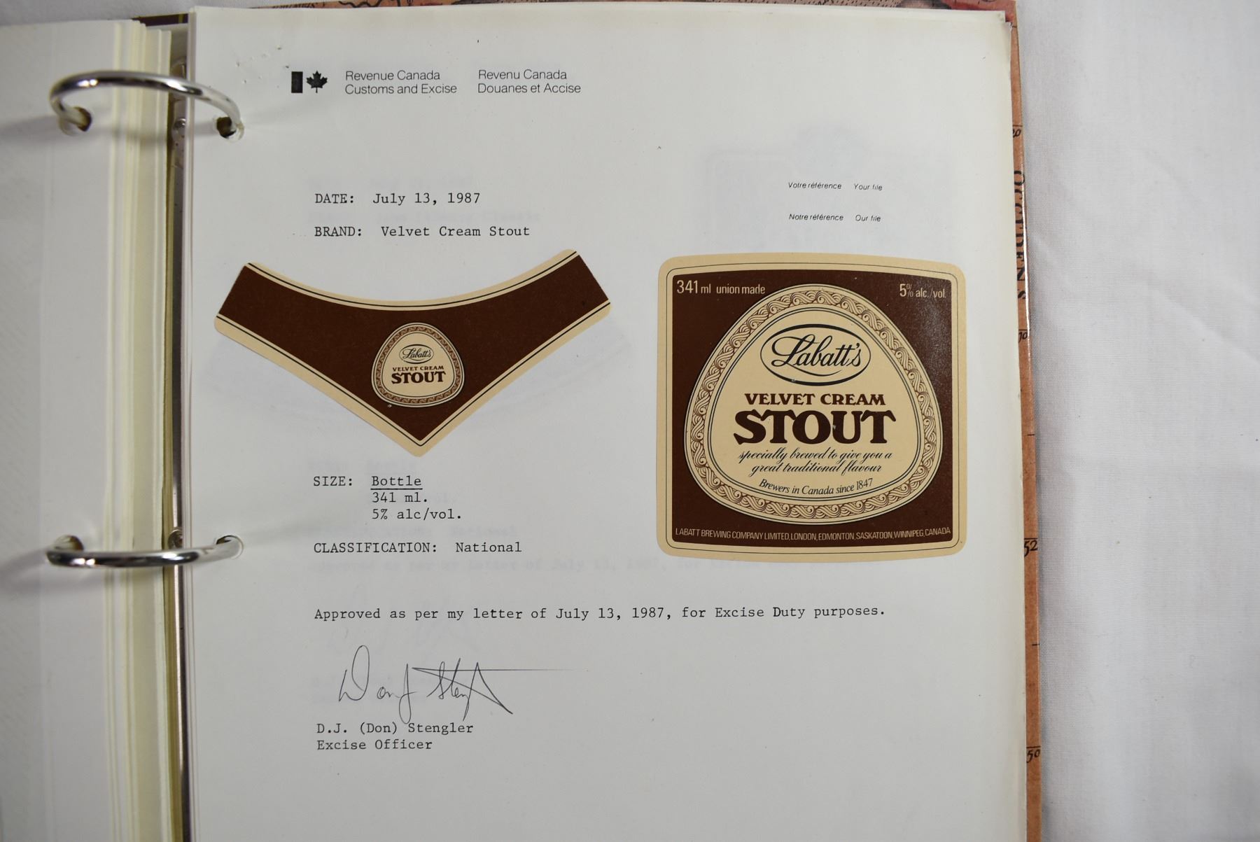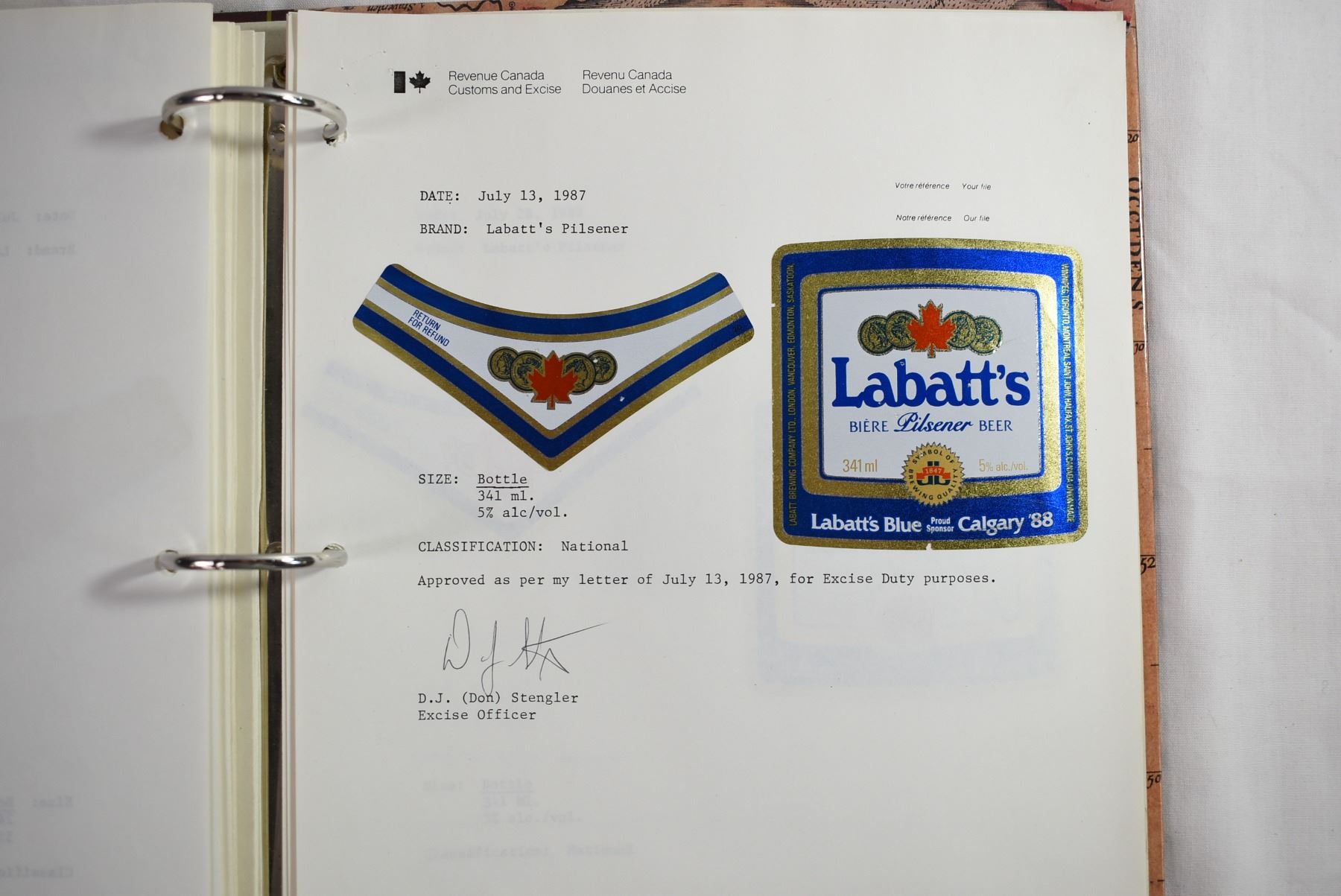 Labatts Brewery Saskatoon Booklet filled with many pages of Labels, Letters + Seals