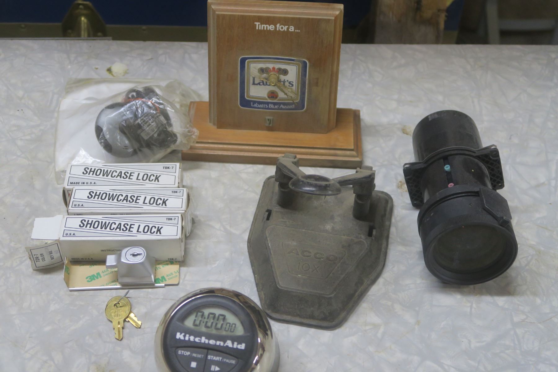 Labatts Clock / Hole Punch / Kitchen Aid Timer / 3 x Showcase Locks / Web Cam