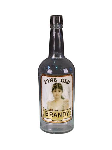 Label Under Glass Back Bar Bottle "Fine Old Brandy" Excellent condition, no chips or cracks