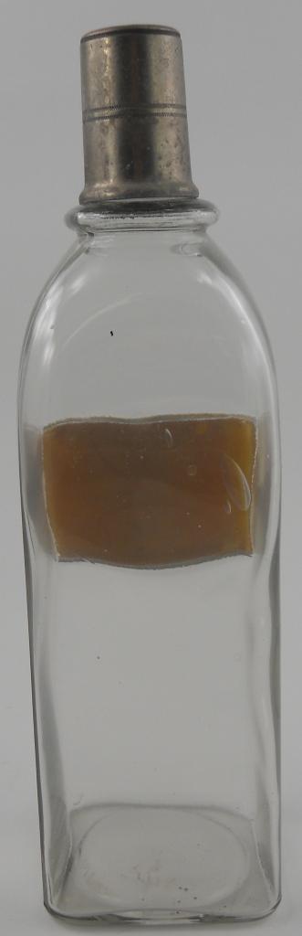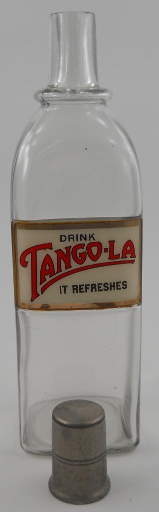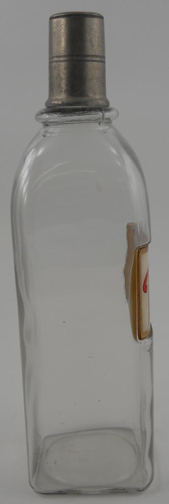 Here we have a label-under-glass soda-fountain flavor bottle. It is 3 inches x 3 inches x 11 inches tall and comes with the original lid. The label has no flaws; there are some nice bubbles in the glass bottle. This is about as nice as they come!