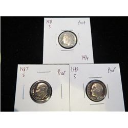 Roosevelt Dimes "All Proofs" 1981S, 1987S & 1989S