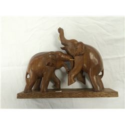 Hand Carved Wood Signed Table Lamp and 2 Candle Holders