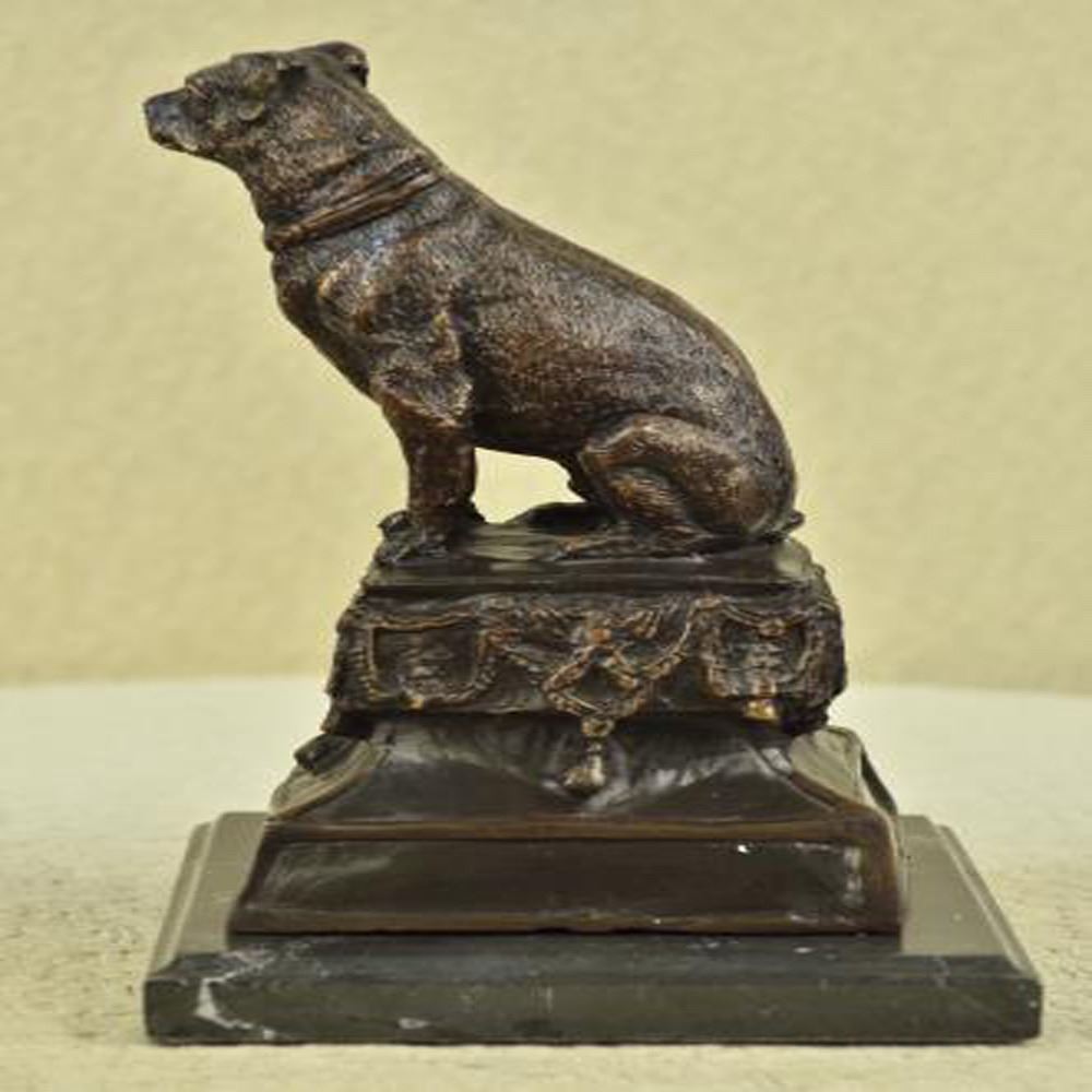The Labrador is the most popular breed of dog in the world. The dogs of this breed are very loving, kind, and compassionate to their master. A breed characteristic is webbed paws for swimming, useful for the breeds original purpose of retrieving nets. This and their subsequent use as hunting companions, gave them the name retriever. This Sculpture was certainly made to honor the breed, with the dog being placed on an ornately decorated base. They are a very loyal animal; truly a man best friend. The Sculpture is made of 100% pure Bronze with a brown patina and is set on a marble base. Bronze Dimensions with Marble Base: Height 12 X Width 7 inches. Weight: 14 LBS.