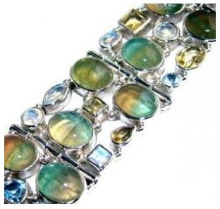 Silver & Labradorite, Citrine and Rainbow Moonstone Bracelet. Allow 6 to 8 weeks for delivery.