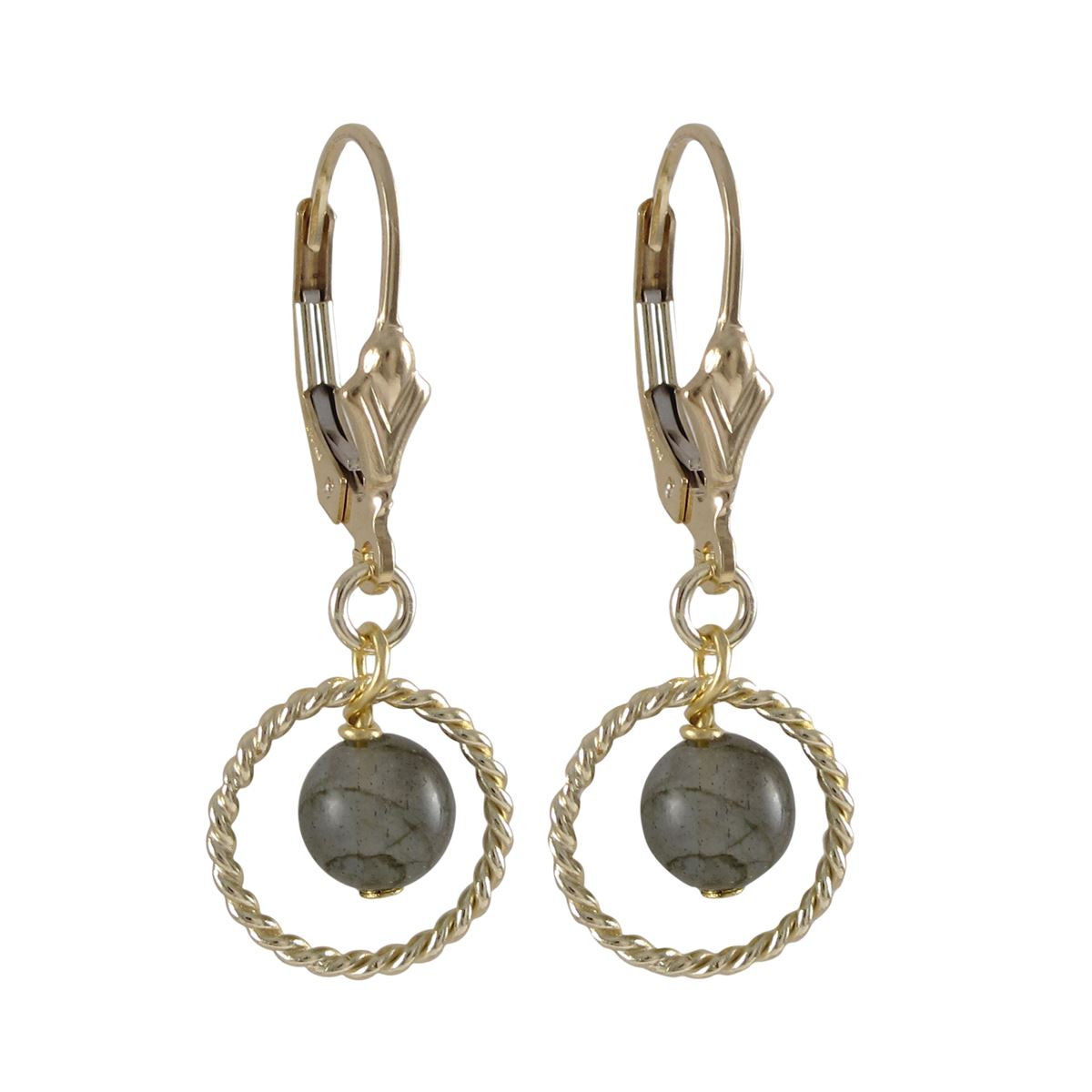 Labradorite(Grey) 6Mm Semi Precious Ball In 10Mm Braided Ring, On Gold Filled Lever Back Earrings, 1.18"