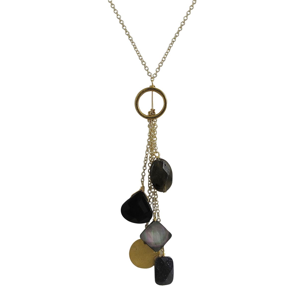 Labradorite(Grey) And Black Combination Semi Precious Stones Lariat Style On Gold Tone Brass Chain -16" 2"