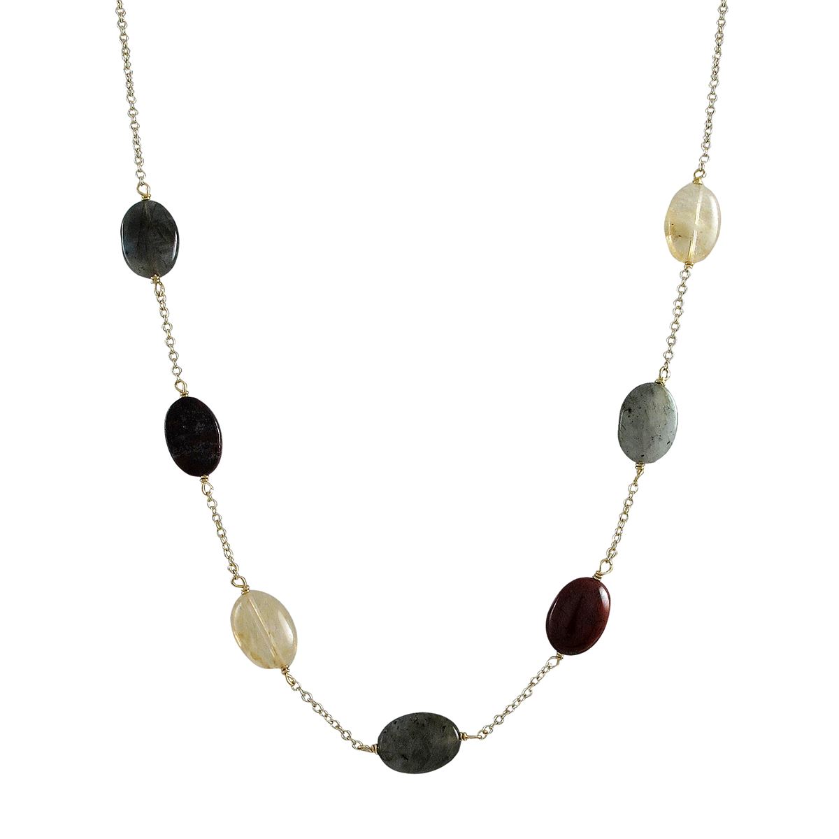 Labradorite(Grey) And Poppy Jasper Combination Semi Precious Stones On Gold Tone Brass Chain -16" 2"