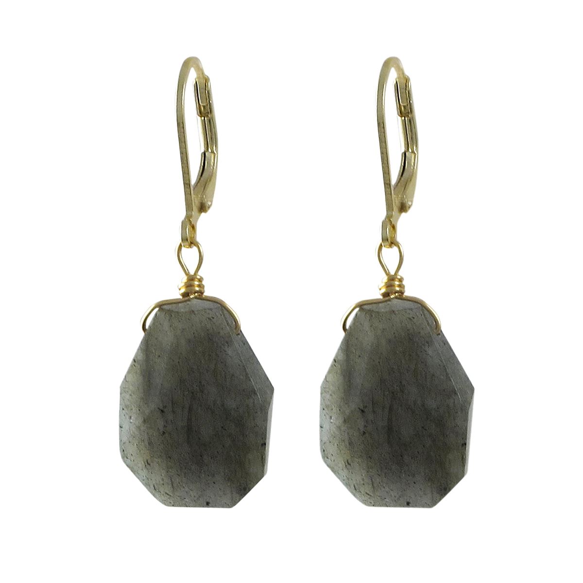 Labradorite (Grey) Semi Precious Stone On Gold Tone Sterling Silver Lever Back Earrings -1.54"