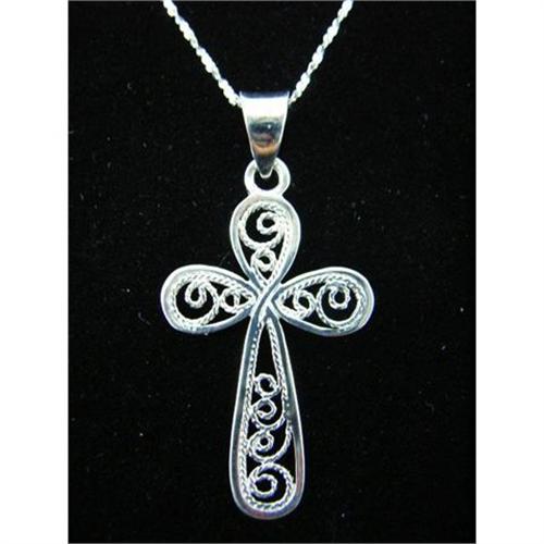 <tr><td>Title:Lacework Cross Sterling Silver Pendant</td></tr>
