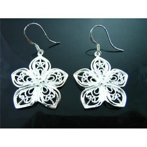 <tr><td>Title:Lacework Flower Sterling Silver Earrings</td></tr>