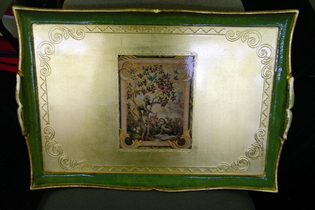 Lacquered Tray With Monkeys-Made in Italy - 21" W
