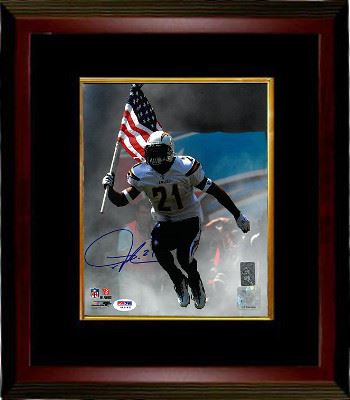 Ladainian Tomlinson played the majority of his 11-year career with the San Diego Chargers, who selected him with the fifth overall pick in the 2001 NFL Draft. Tomlinson was selected to five Pro Bowls, was an All-Pro six times, and won two rushing titles (2006 and 2007). At the time of his retirement, he ranked fifth in career rushing yards (13,684), seventh in all-purpose yards (18,456), second in career rushing touchdowns (145), and third in total touchdowns (162). An effective passer on halfback option plays, Tomlinson threw seven touchdown passes and ranks second behind Walter Payton (8) for non-quarterbacks. He was named to the NFL's 2000s All-Decade Team as one of the top running backs of the 2000s. Ladainian Tomlinson has hand autographed this San Diego Chargers 8x10 Photo. PSA and Tomlinson Hologram and Certificate of Authenticity from PSA. Custom Black Mat and Premium Mahogany Color Framed as shown.