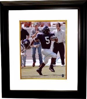In the 1998 season Ladainian Tomlinson helped the TCU Horned Frogs win its first bowl win in 41 years against the University of Southern California in the Sun Bowl. During his junior season in 1999, he set an NCAA record for yards in one game with 406 against UTEP. He ended the year with an NCAA-leading 1,850 yards rushing to go along with 18 touchdowns. In his senior season in 2000, Tomlinson led the NCAA for the second time with 2,158 yards and 22 touchdowns while adding 354 yards receiving. He won the Doak Walker Award as the nation's best running back, and was a finalist for the Heisman. Ladainian Tomlinson has hand autographed this TCU Horned Frogs 16x20 Photo. White Mat and Black Color Framed as shown. Tomlinson Hologram and Certificate of Authenticity.