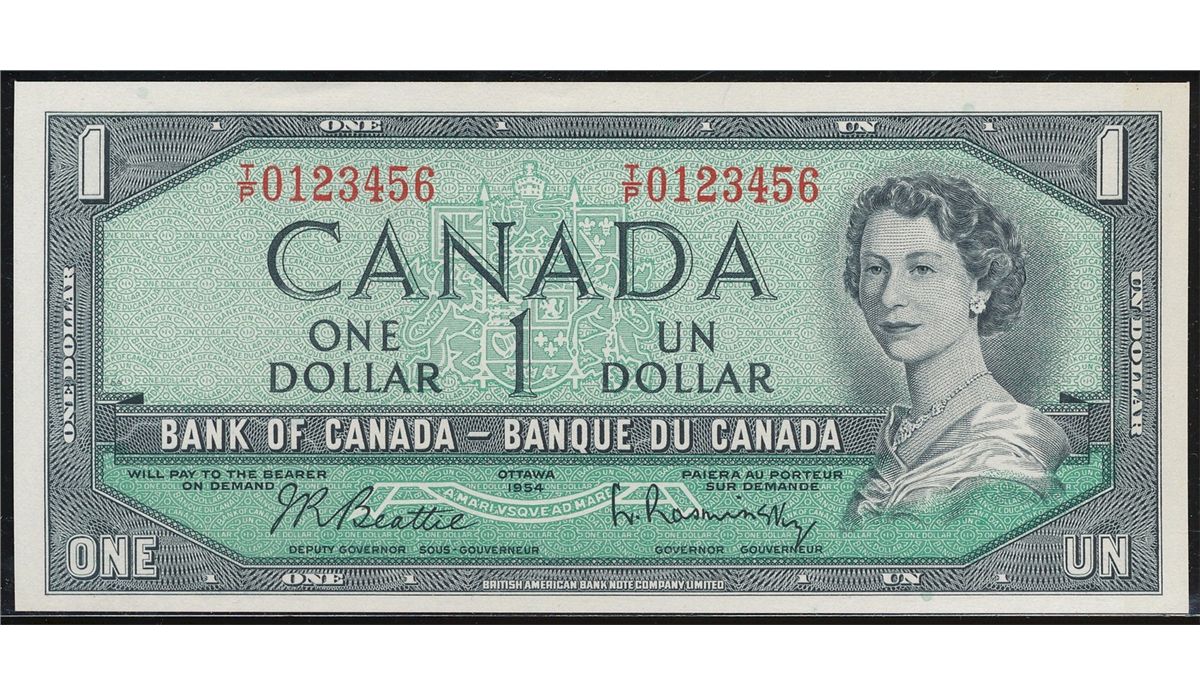 Ladder; 1954 $1 BC-37bi #TP0123456. Crisp CH UNC.